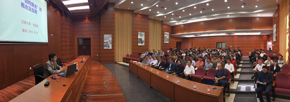 本站讯:为进一步促进公司学科、专业的建设发展,2018年10月29日下午,在行政楼一楼报告厅,江苏大学乔冠军教授应邀来公司举行题为《材料“结构复合”的概念及应用》的学术讲座,公司领导班子、老师和员工近150人聆听了乔教授的精彩讲座。