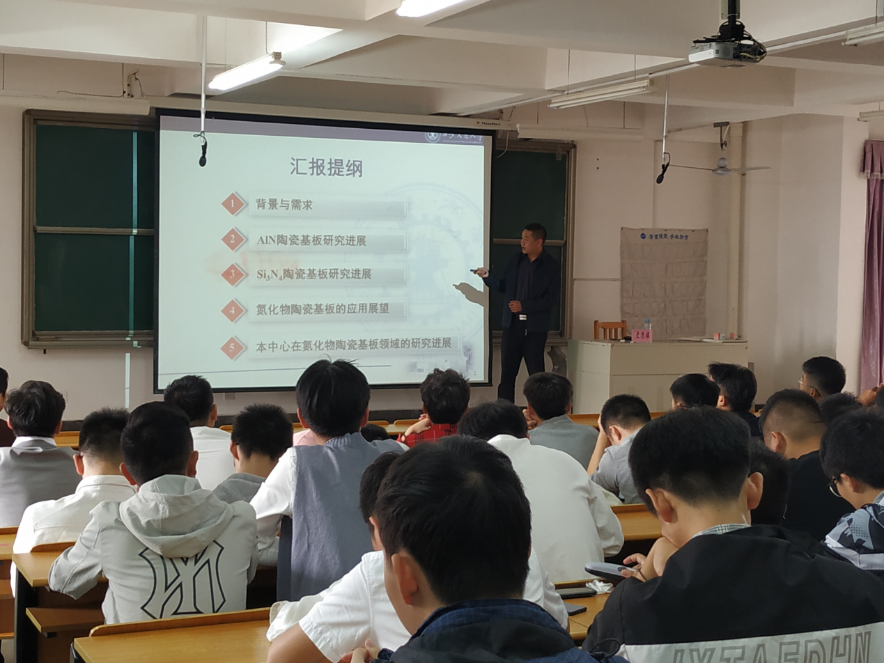 史忠旗教授先从功率器件的应用现状及发展趋势出发,引出了功率器件存在的问题---散热以及散热效果不好造成的影响,然后针对散热问题,图文并茂地讲述了陶瓷基板的制备工艺流程、AIN陶瓷基板研究进展、Si3N4陶瓷基板研究进展和氮化物陶瓷基板的应用展望。讲座旁征博引,生动有趣,员工学习兴趣浓厚,并且史忠旗教授平易近人的态度、渊博的知识、谦虚有礼的风度都给全校员工留下了深刻的印象。