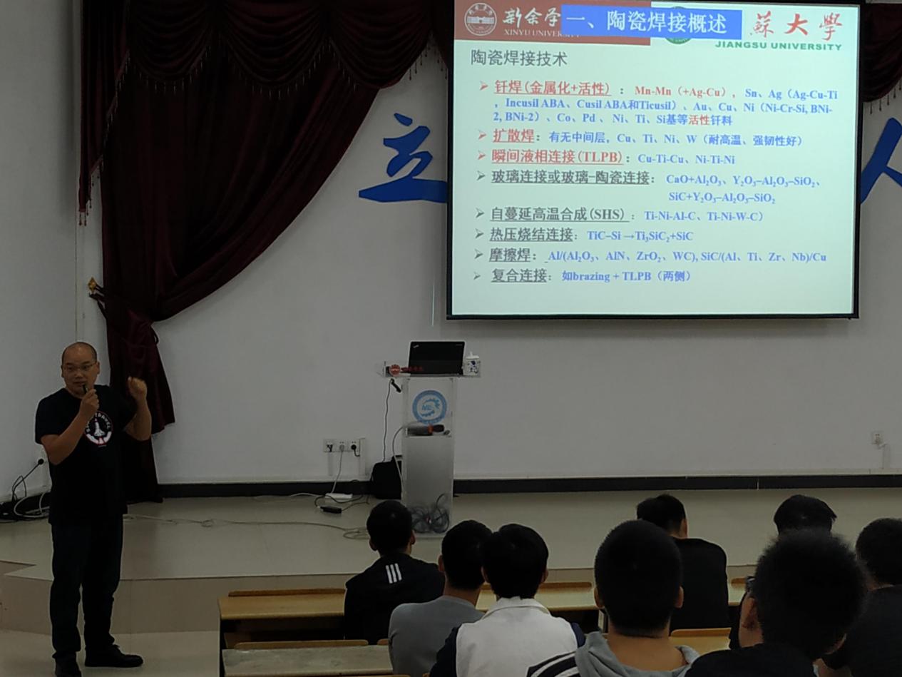 刘桂武教授先从陶瓷焊接技术的分类说起,然后图文并茂地讲述了Al2O3陶瓷金属化钎焊、ZrO2陶瓷的活性钎焊、SiC陶瓷的钎焊和陶瓷空气钎焊这四种钎焊的工作原理及应用。讲座生动有趣,员工学习兴趣浓厚,师生互动性强,并且刘桂武教授平易近人的态度、渊博的知识、热情磅礴的话语都给全校员工留下了深刻的印象。讲座完毕后,就材料的成型及材料研究的方向与员工进行了热烈的交流。