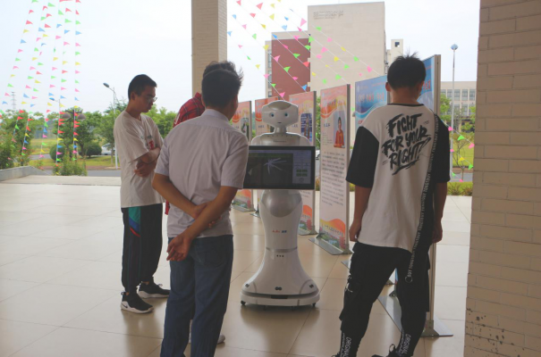 为落实党中央厉行节约精神,学院在迎新布置上删繁就简,突出重点。学院老师特别给新同学准备了入学寄语,激励着新生刻苦求学,立志高远。在迎新活动现场,可爱的迎新机器人的亮相便吸引现场新生驻足观看,也让本次迎新活动凸显十足的科技感。