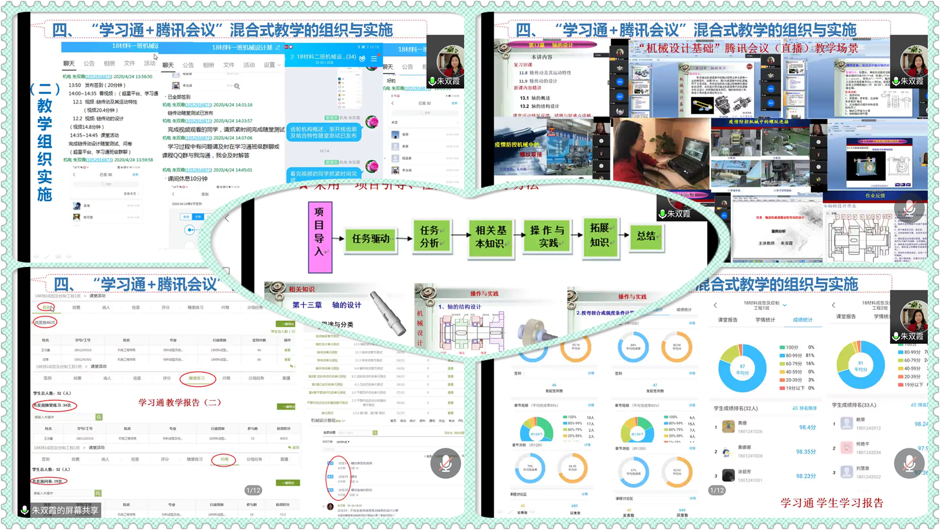 沙龙活动紧紧围绕线上混合式教学探索为主题,以精品课程《机械设计基础》为例,就混合式教学基础(包括教学内容、教学方法、多媒体教学、翻转课堂教学等)、混合式教学设计(包括学习通和腾讯会议的混合式教学)、课程线上教学资源再建设、混合式教学实践等与参加师生进行了线上线下互动式研讨。