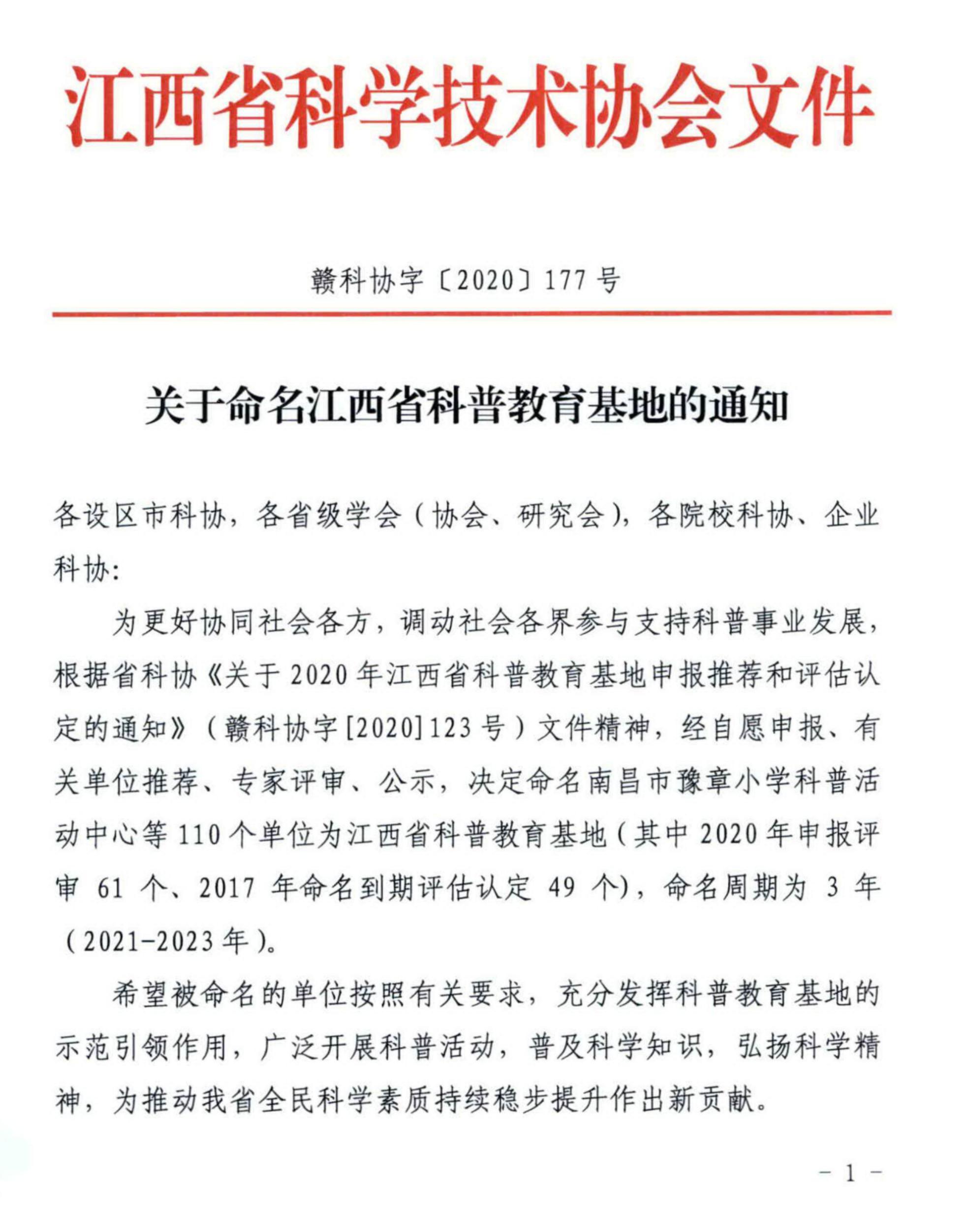 据省科协《关于2020年江西省科普教育基地申报推荐和评估认定的通知》(赣科协字[2020]123号)文件精神,经有关单位推荐、专家评审、公示,英国上市公司365被正式命名为“江西省科普教育基地”,并于2021年4月9日召开的新余市科协系统工作会议中正式授牌。