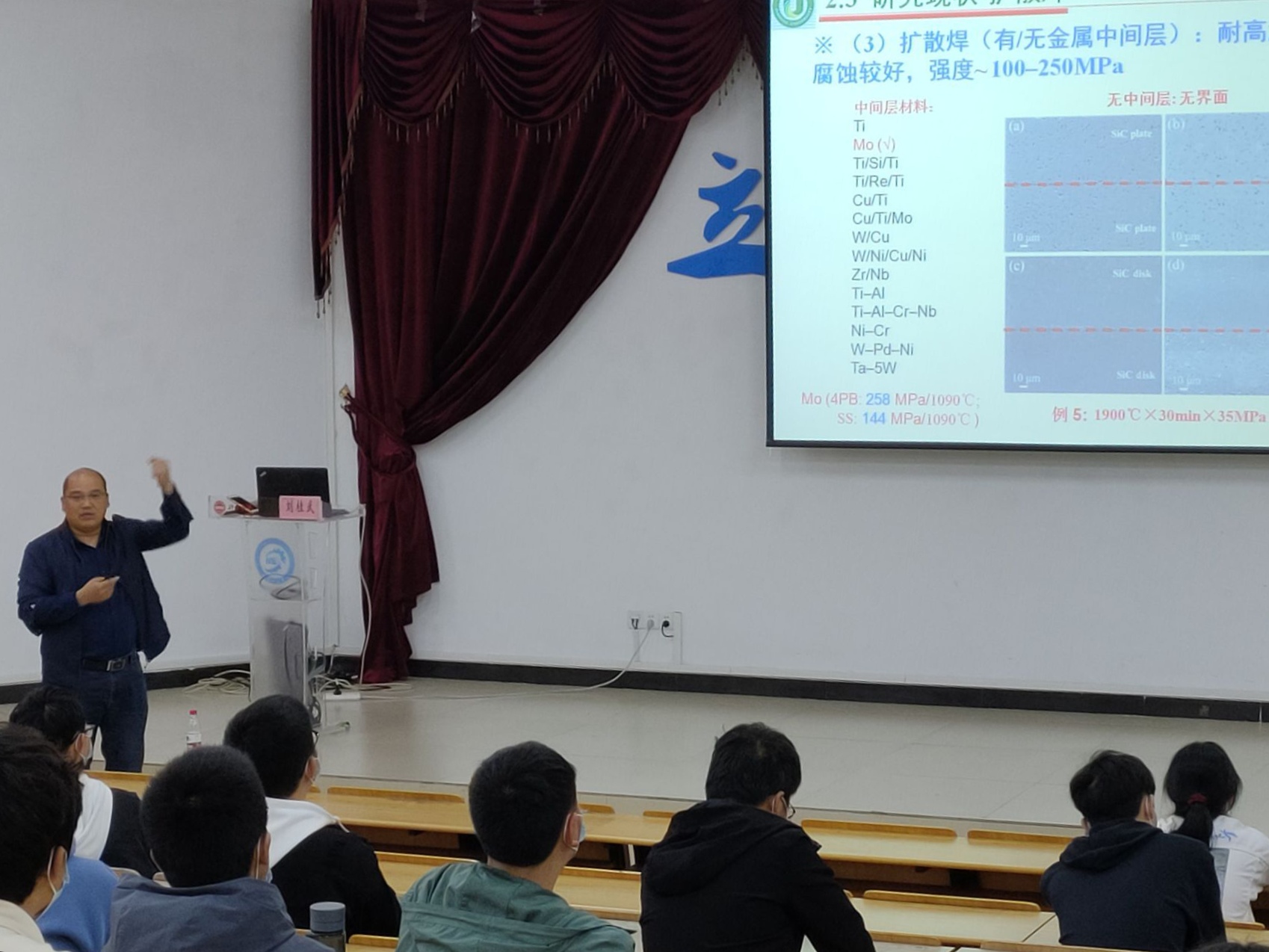 刘桂武教授首先介绍了“SiC基材料焊接技术及展望”的研究背景,通过图文和案例的方式向同学们介绍了研究成果。本次讲座生动有趣,员工学习兴趣浓厚,师生互动性强,刘桂武教授平易近人的态度、渊博的知识、热情磅礴的话语都给全校员工留下了深刻的印象。讲座结束后,刘桂武教授就材料的研究方向与员工进行了热烈的交流,并鼓励员工继续深造,努力提升自身专业能力。