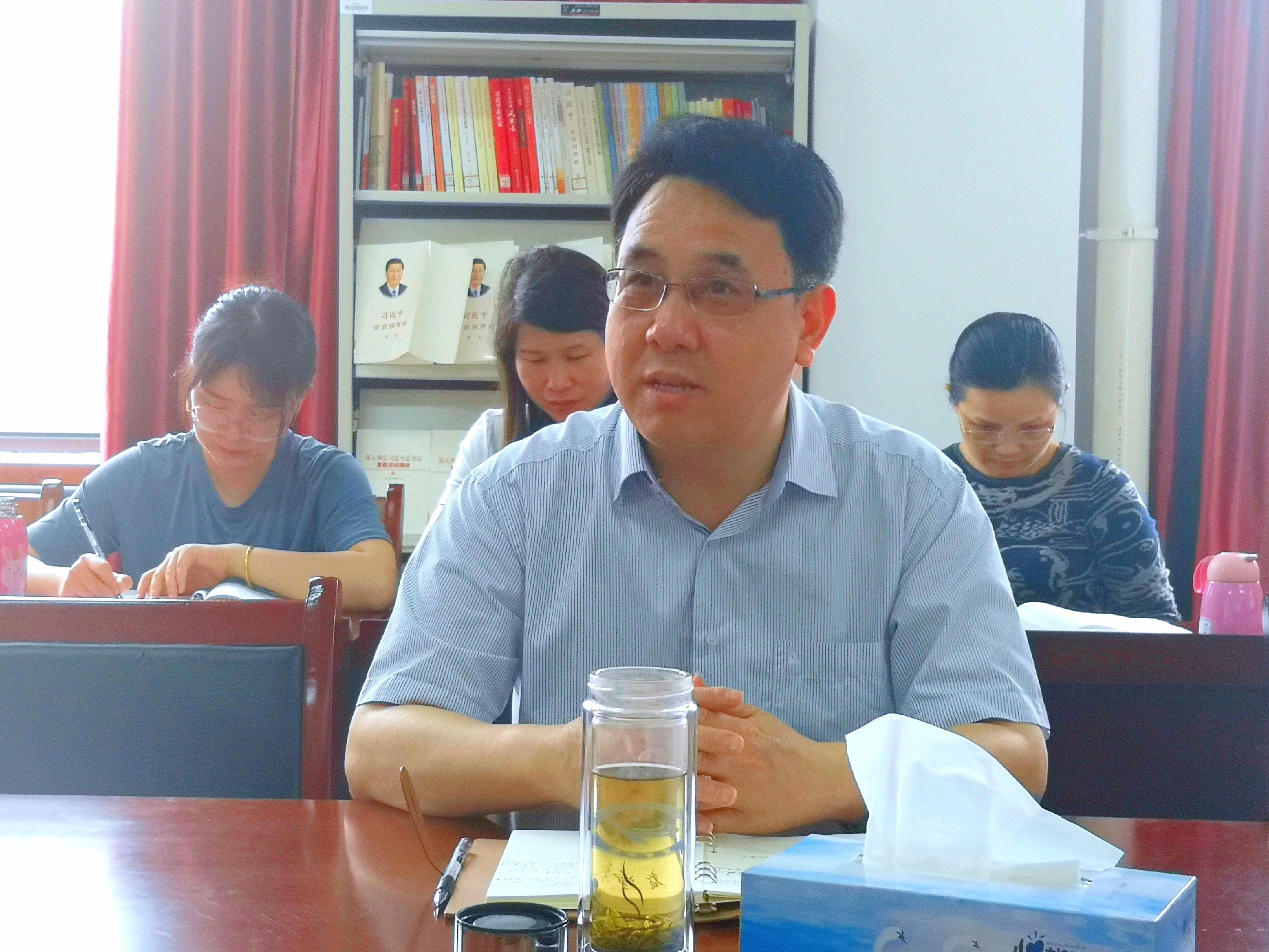 公司党委副书记方建新介绍了该院前一阶段党史学习教育开展情况和特色亮点,并汇报了下阶段的工作思路。李明斌就党史学习教育如何做到覆盖全体师生,如何办实事、开新局,如何利用现有电子资源进行学习,和与会同志交流了看法,提出了指导意见。随后,李明斌会同该院教工第一党支部同志共同收看了党史学习教育专题讲座,并认真聆听了三位教师党员代表的学习心得体会。