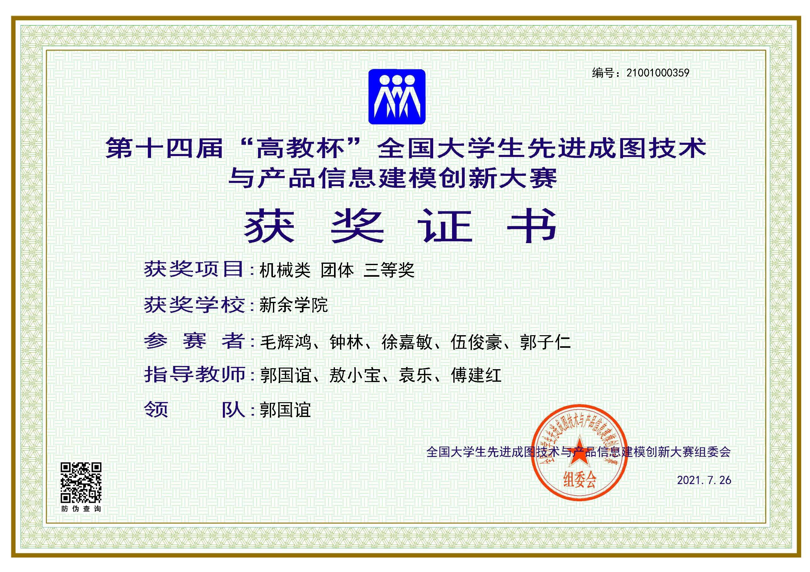7月24日至26日,第十四届“高教杯”全国老员工先进成图技术与产品信息建模创新大赛在西南交通大学成功举办。英国上市公司3659名师生组成的代表队参加了本次比赛,并获得机械类团体三等奖。参赛的7名员工中,毛鸿辉获得机械类个人全能二等奖,钟林、徐嘉敏、郭子仁、王文燕、伍俊豪五位同学分别获得机械类个人全能三等奖,竞赛成绩实现新的突破。
