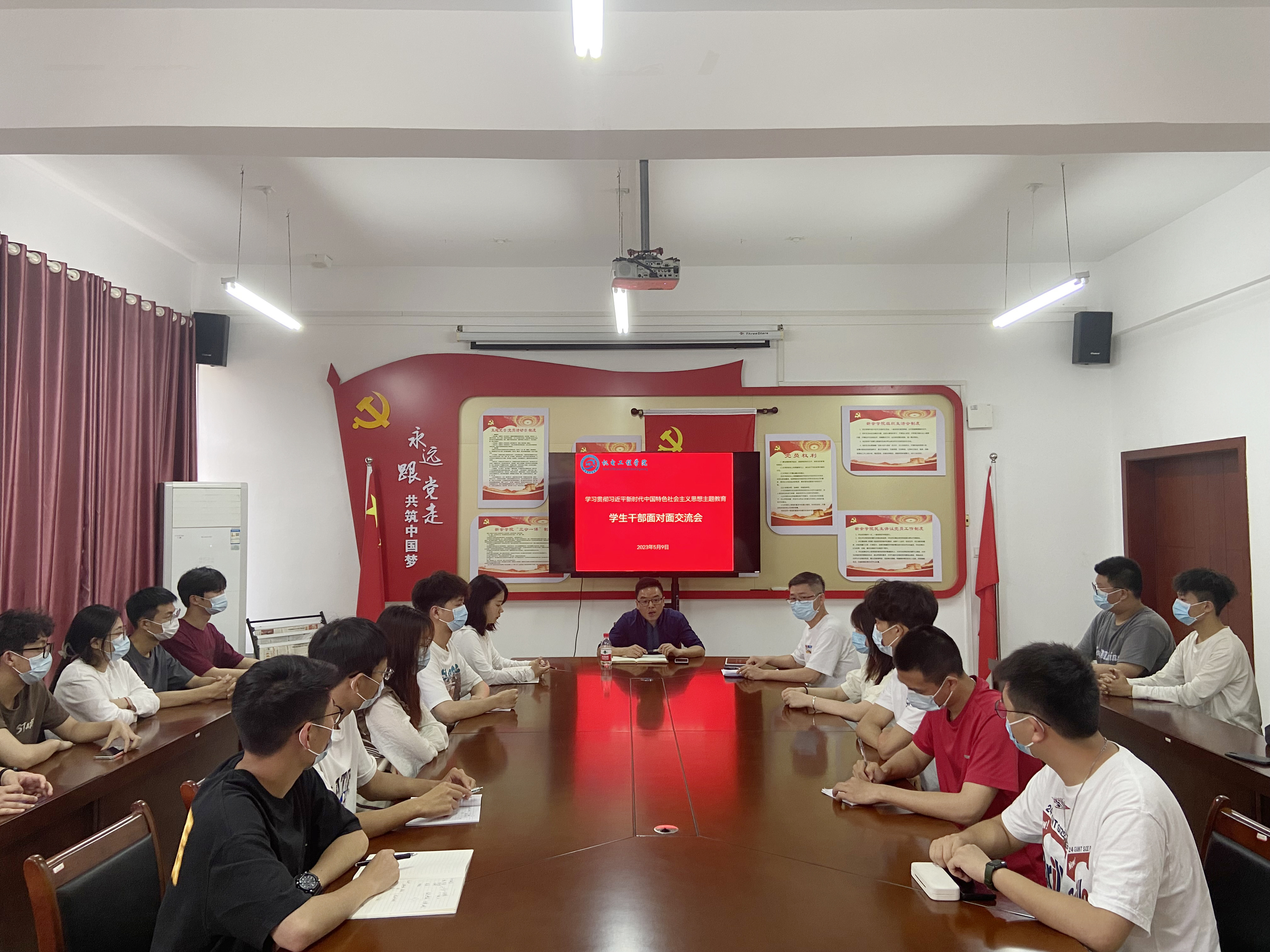 为深入开展学习贯彻习近平新时代中国特色社会主义思想主题教育,大兴调查研究之风,聚焦员工反映诉求,英国上市公司365结合学习贯彻习近平新时代中国特色社会主义思想主题教育总体安排,5月9日在公司党员活动室召开“员工干部面对面”交流会。会议由学院负责人陈枭主持,学院团委书记李倩倩、员工科负责人严智敏及全体员工会成员出席交流会。