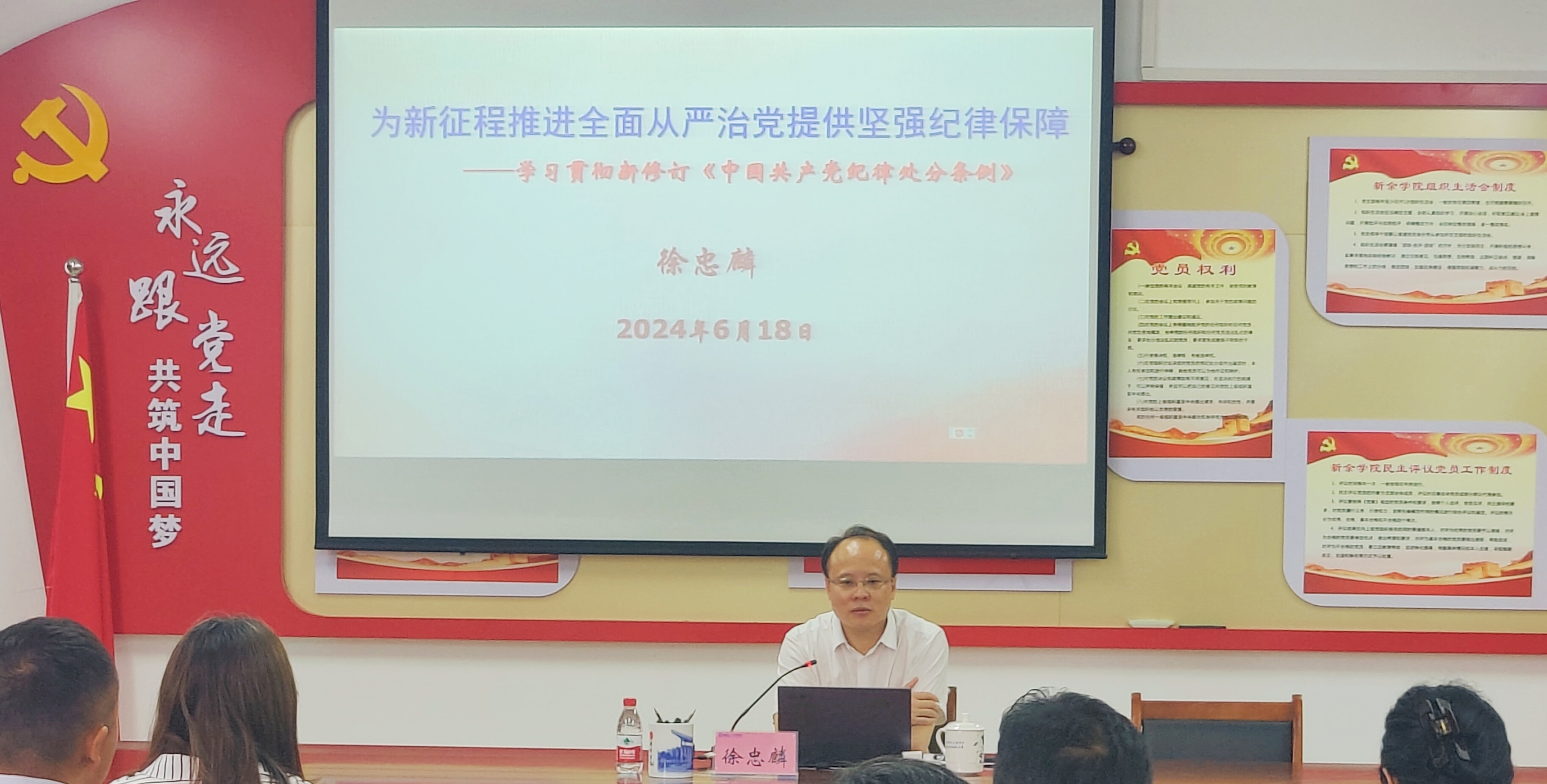 徐忠麟董事长从党的纪律建设历史沿革、深刻认识和准确把握《中国共产党纪律处分条例》(以下简称《条例》)的重要意义和主旨要义、认真抓好《条例》的贯彻执行等三个方面,结合学校工作实际,进行了全面、系统的解读。徐忠麟董事长要求,全体党员要持续深入学习《条例》,自觉将纪律要求内化于心、外化于行,坚定理想信念、加强党性修养,提升政治素养。