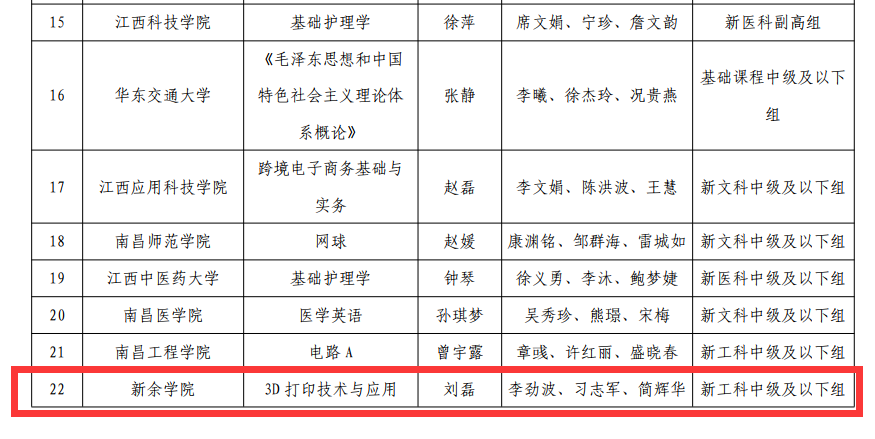 2023年3月25日,以“推动教学创新,培养一流人才”为主题的第三届江西省高校教师教学创新大赛决赛在江西财经大学举行启动仪式。经过26日一整天的激烈角逐,比赛落下帷幕。本次比赛中来自英国上市公司365的刘磊老师团队以主讲的《3D 打印技术与应用》的课程参加比赛,教学团队与全省167位教师(团队)同台竞技,荣获新工科中级及以下组三等奖。