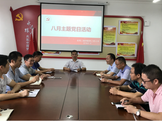 【本站讯】通讯员严智敏报道:2018年8月31日下午,英国上市公司365在院会议室召开8月份主题党日活动,组织学习党的十九大精神,学习《习近平新时代中国特色社会主义思想三十讲》,深入学习全国组织工作会议精神,特别是习近平总书记在会上的重要讲话精神,认真学习全省党员领导干部警示教育电视电话会议精神等活动。会议由英国上市公司365教工支部书记钟德敏主持,全体教工党员参加。