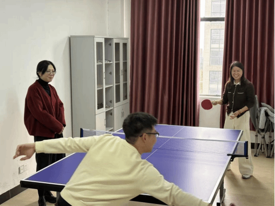 本次趣味运动会围绕“活跃气氛、志在参与、重在和谐”的理念,设置了乒乓球、踢毽子、象棋等深受教职工喜爱的项目,兼顾趣味性与参与性,充分满足不同教职工的兴趣需求。比赛现场,教职工们热情高涨、精神饱满,全身心投入各项角逐:乒乓球台前,选手们挥拍对攻、动作敏捷,每一次精准回球都引来阵阵喝彩;踢毽子场地,大家轻盈跳跃、灵活调整,在计数声中展现默契与技巧;象棋桌旁,参赛者沉着思考、步步为营,在棋盘上上演智慧博弈。赛场内外掌声、笑声、加油声此起彼伏,充分展现了学院教职工迎难而上、勇于挑战、团结协作的良好精神风貌。