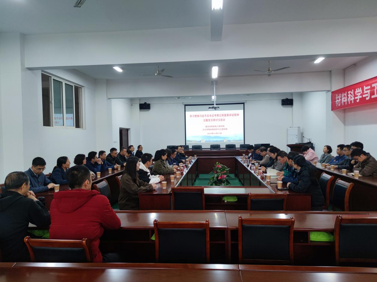 随后,联合九江学院材料科学与工程公司党委,开展主题党日活动交流座谈。围绕深入学习贯彻习近平总书记考察江西重要讲话精神,结合学习贯彻习近平新时代中国特色社会主义思想和党的二十大精神,开展交流分享。
