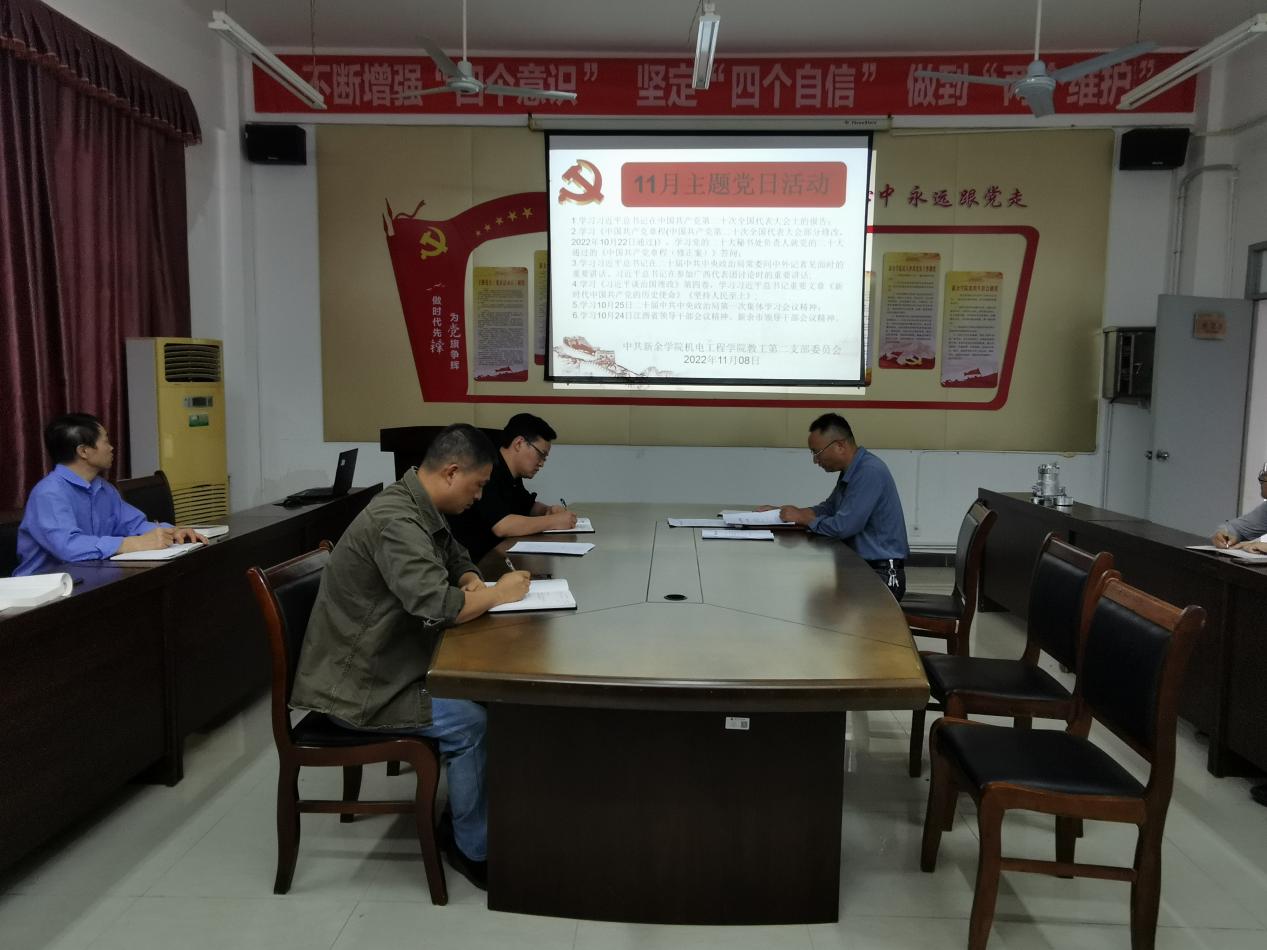 为深入学习贯彻党的二十大报告精神,11月8日,中共英国上市公司365教工第二党支部开展了11月份主题党日活动。会议由支部书记杨国军主持,全体党员参加。