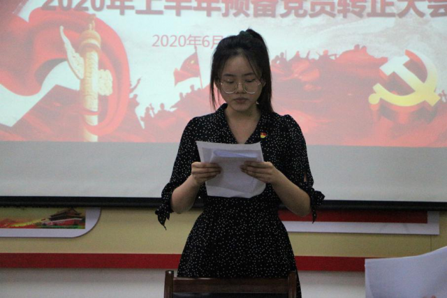 15名预备党员分别就一年以来的思想、学习、工作向党支部进行汇报。随后,各入党介绍人根据拟转正同志的汇报情况,结合自己的了解,对拟转正同志的教育、考察情况向支部进行说明。结合预备党员的汇报及入党介绍人意见,与会党员同志进行了逐个讨论。经无记名表决投票,一致同意李磊等15名预备党员转为中共正式党员。结果公布后,15名同志表示以后将会以党员身份严格要求自己,争取成为一名优秀的共产党员。