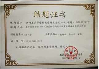 2 | 基于慕课背景下的《公差配合与技术测量》课程教学模式研究 | 江西省教改项目 | 江西省教育厅 | 朱双霞 | 2019 |