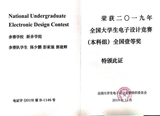 2019年全国老员工电子设计大赛 全国一等奖1项(团体赛);