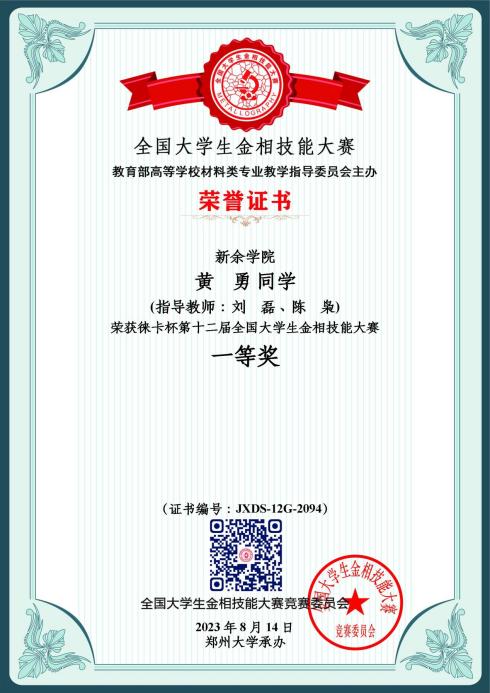2023 | 第十二届 | 个人一等奖 | 黄勇 | 21级材料成型及控制工程 |