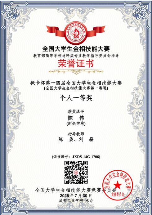 2025 | 第十四届 | 个人一等奖 | 陈伟 | 23级材料成型及控制工程 |