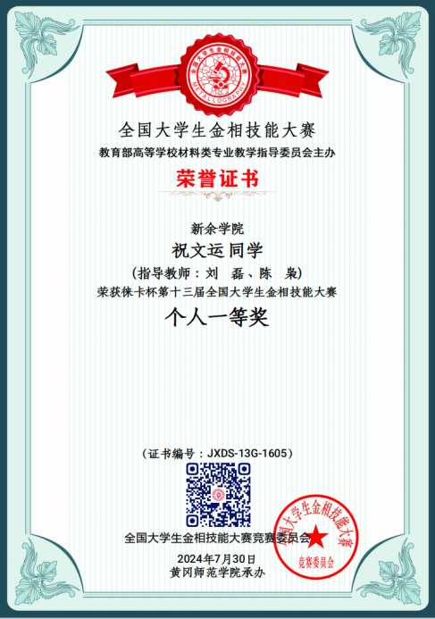 2024 | 第十三届 | 个人一等奖 | 祝文运 | 22级材料成型及控制工程 |
