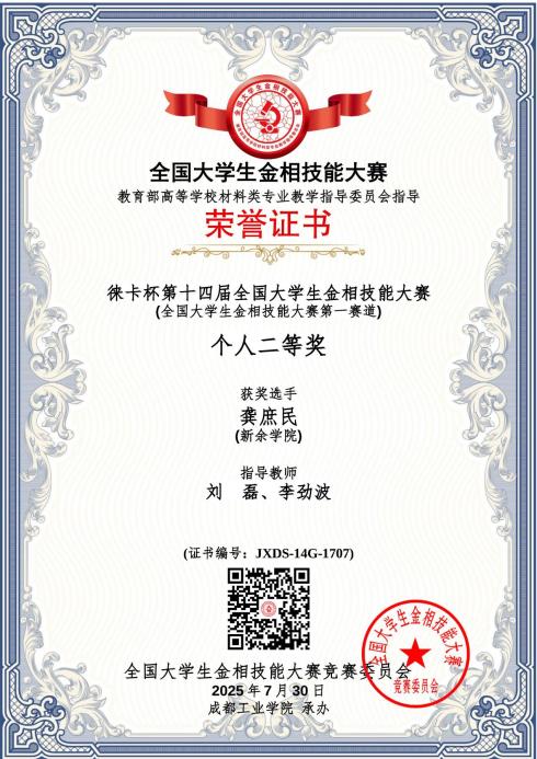 2025 | 第十四届 | 个人二等奖 | 龚庶民 | 23级材料成型及控制工程 |