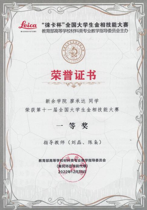 2022 | 第十一届 | 个人一等奖 | 廖承达 | 20级材料成型及控制工程 |