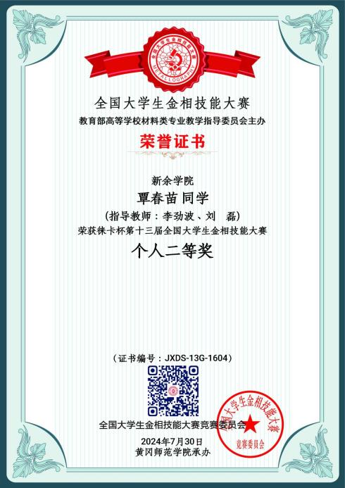 2024 | 第十三届 | 个人二等奖 | 覃春苗 | 23级材料成型及控制工程 |