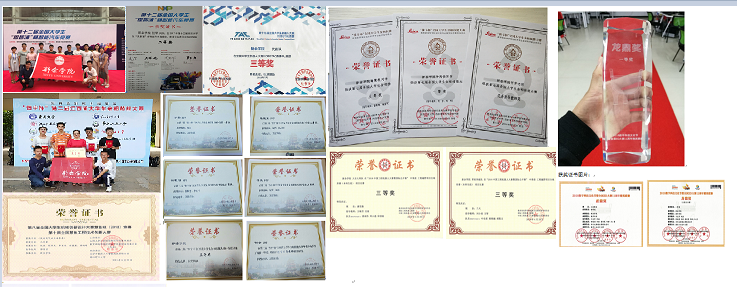 全国三维数字化创新设计大赛2项(江西赛区特等奖后获得全国比赛的资格,全国一等奖)、