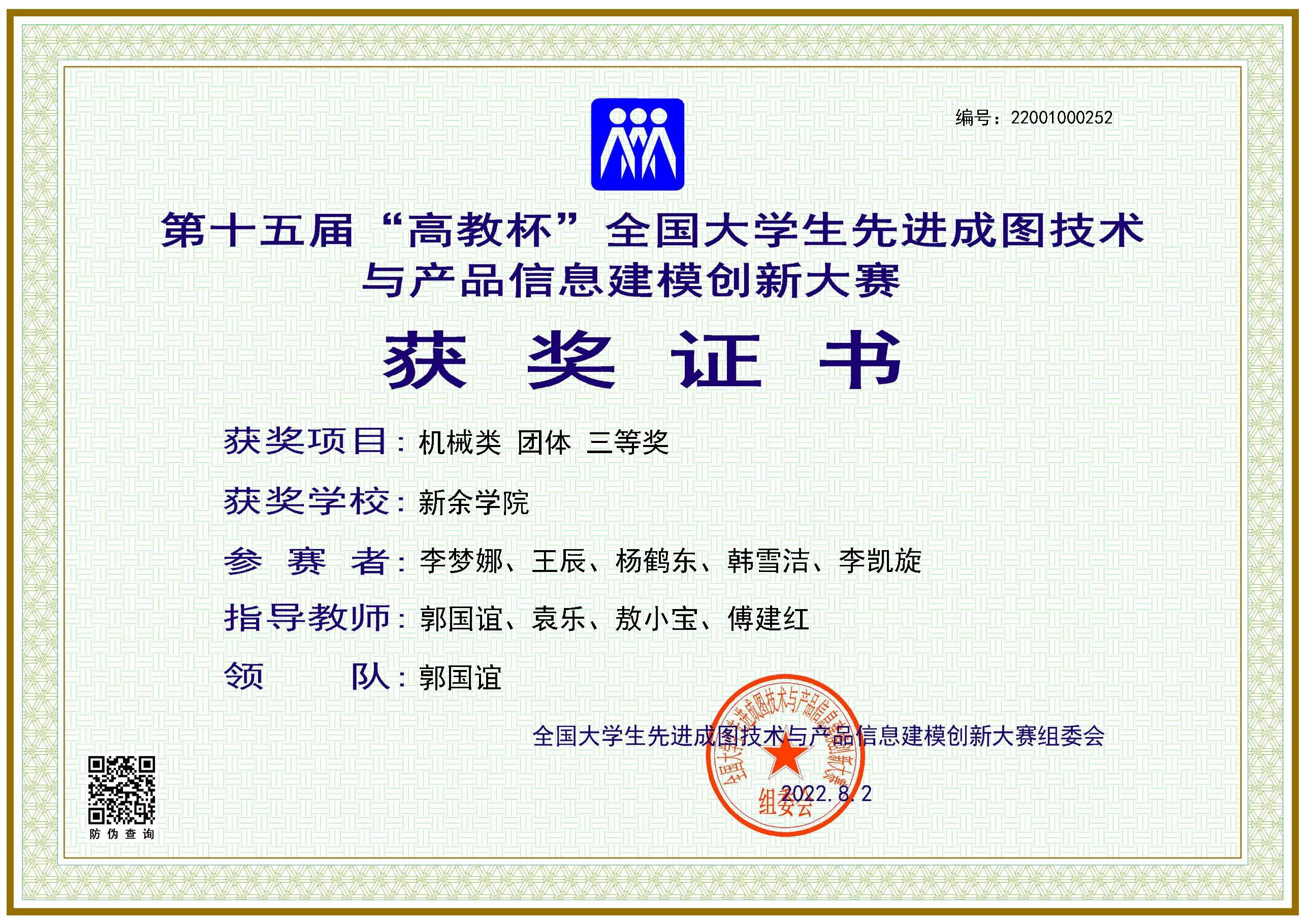 7月29日至8月2日,第十五届“高教杯”全国老员工先进成图技术与产品信息建模创新大赛在江苏大学成功举办。英国上市公司365代表队参加了本次比赛,并获得机械类团体三等奖。参赛员工中,李梦娜、王辰获得机械类个人全能二等奖,韩雪洁、李凯旋、杨鹤东三位同学分别获得机械类个人全能三等奖。