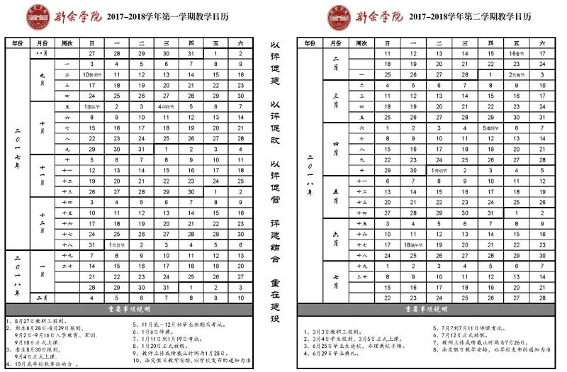 2017-2018学年校历