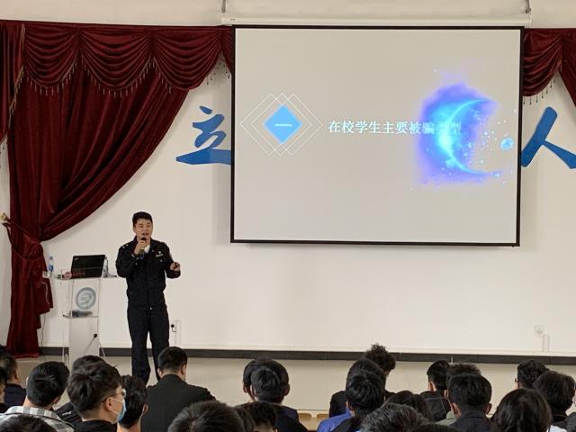 随后,段警官结合实际案例,分析了当前网络电信诈骗犯罪活动的特点及形势,归纳总结了电信诈骗的主要类型和特点,进一步揭露了常用作案手法和犯罪伎俩,借以提醒同学们树立正确的消费观念,防范校园贷、套路贷等诈骗陷阱。