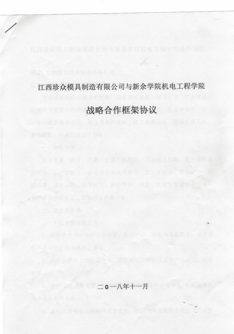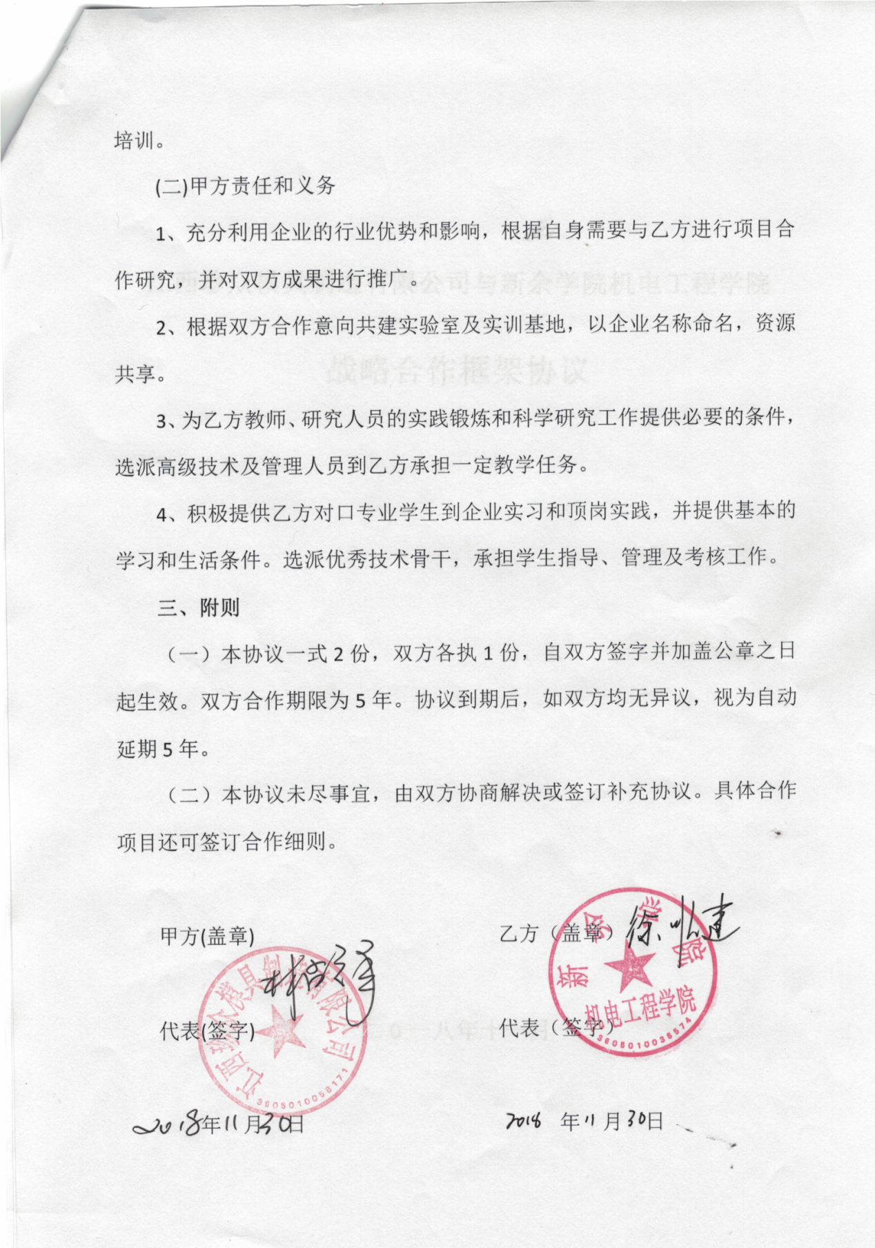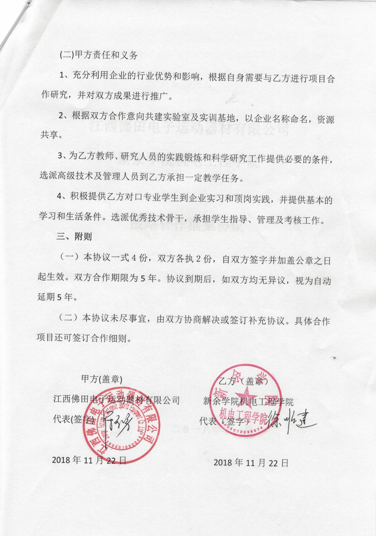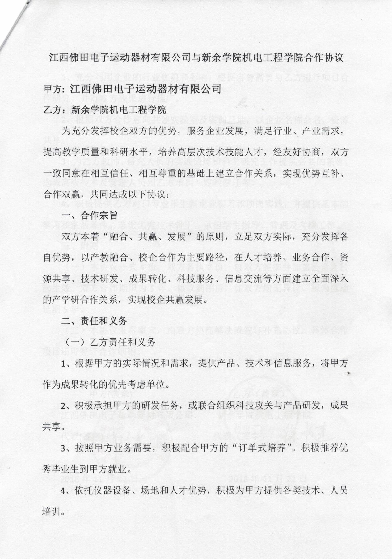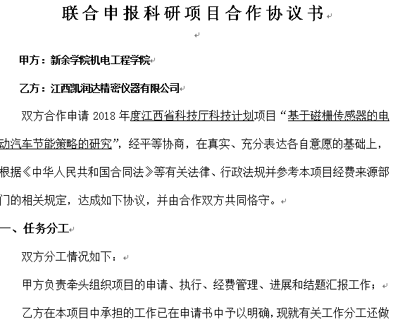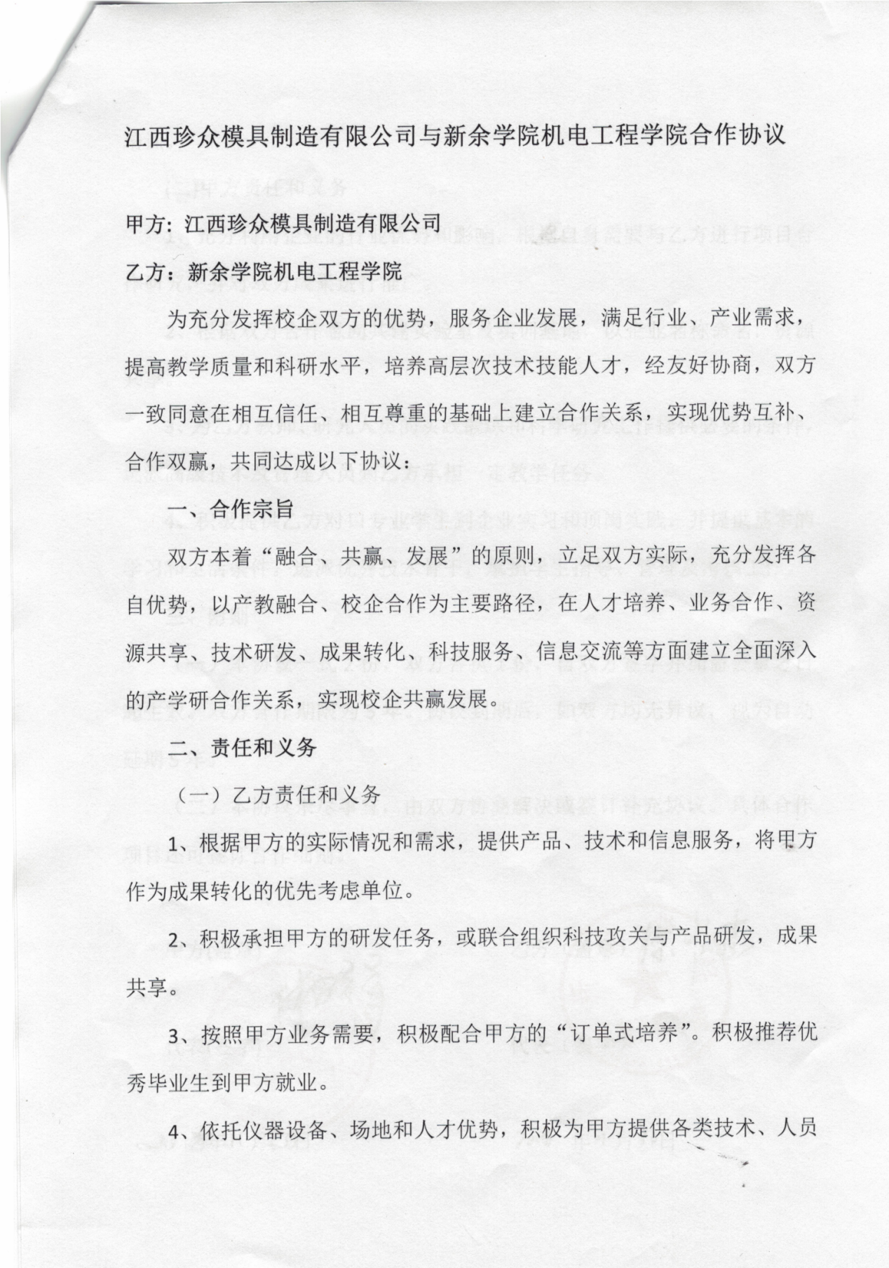 1、目前与江西赣锋锂业股份有限公司、江西珍众模具有限公司、江西佛田电子运动器械有限公司等三家企业已签订合作协议书,与每家企业的合作各有不同的侧重点。三家企业都为为新余的地方企业。